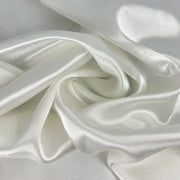 Charmeuse satin uses floating threads into the weave to add smoothness and shine to the face, creating that characteristic satin texture. This pure white charmeuse will elevate and add luxury and elegance to a variety of formal attire.