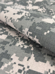 Shirting weight cotton woven with integrated ripstop reinforcement for durability without bulk. Features a striking digital MARPAT camouflage pattern in classic colorways. At 66 inches wide, this versatile fabric works beautifully for tactical shirts, lightweight gear bags, outdoor accessories, and creative projects. The tight weave resists tearing while maintaining breathability and comfort. Perfect for sewers and makers seeking performance fabric with distinctive style.