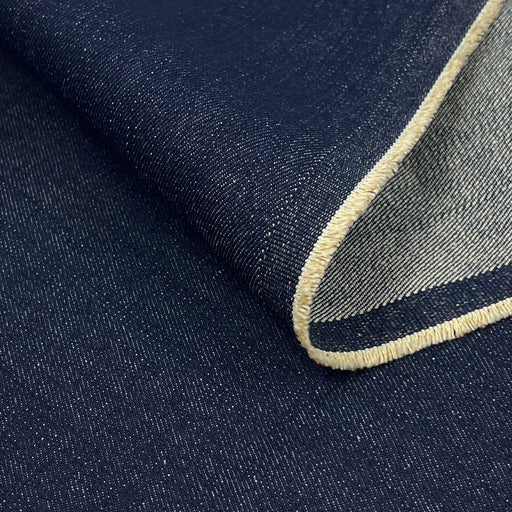 This crisp, heavyweight denim will hold up to the challenges of daily wear and tear. Ideal for workwear, the dark indigo coloring in the dense weav...
