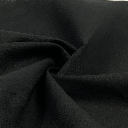 Black linen blend fabric combines natural fiber breathability with smooth drape, making it versatile for contemporary apparel projects. This medium...