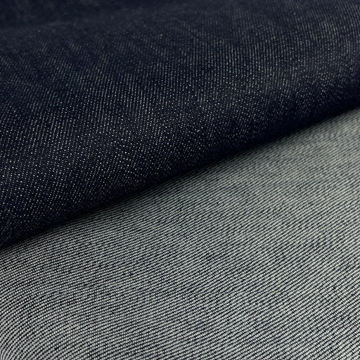 This 12.25 oz dark indigo denim was produced for Wrangler and provides a versatile medium-heavy weight suitable for structured apparel. Great for s...