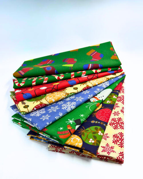 containing up to 10 yards of christmas and winter woven prints in 5 styles.
