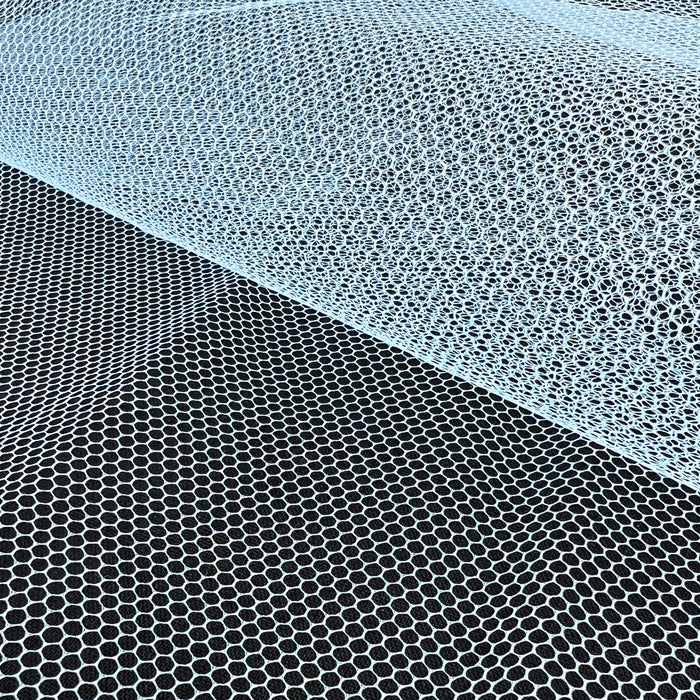 This sky blue polyester tulle features a lightweight, translucent quality ideal for adding fullness to dresses, tutus, and craft designs. Crafted from sturdy polyester fibers, it preserves its form and structure without bulk, enabling the creation of refined, voluminous shapes effortlessly. Perfect for professionals and hobbyists who require dependable fabric to elevate their projects.